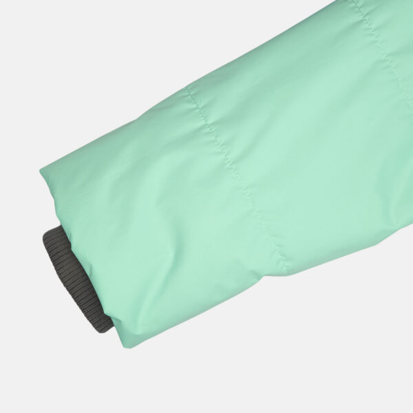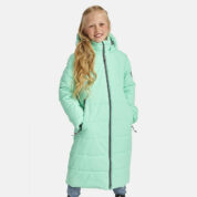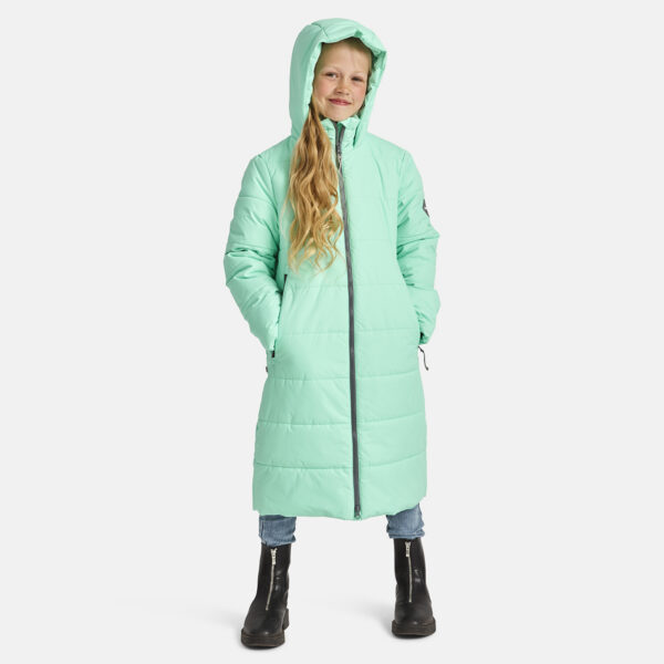 Insulated (100 g) water- and windproof between-seasons coat for girls. The top layer of the coat is breathable as well as water- and windproof. It has ribbed sleeve cuffs. The coat has a two-way zipper at the front and pockets with zippers. It is decorated with reflective details.