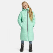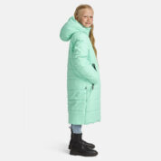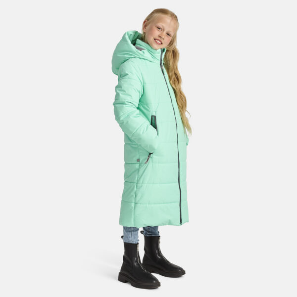 Insulated (300 g) water- and windproof between-seasons coat for girls. The top layer of the coat is breathable as well as water- and windproof. It has ribbed sleeve cuffs. The coat has a two-way zipper at the front and pockets with zippers. It is decorated with reflective details.
