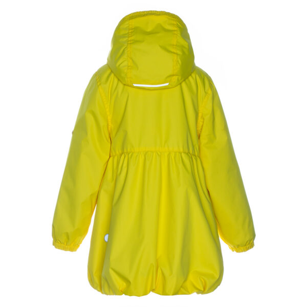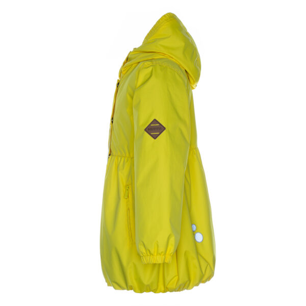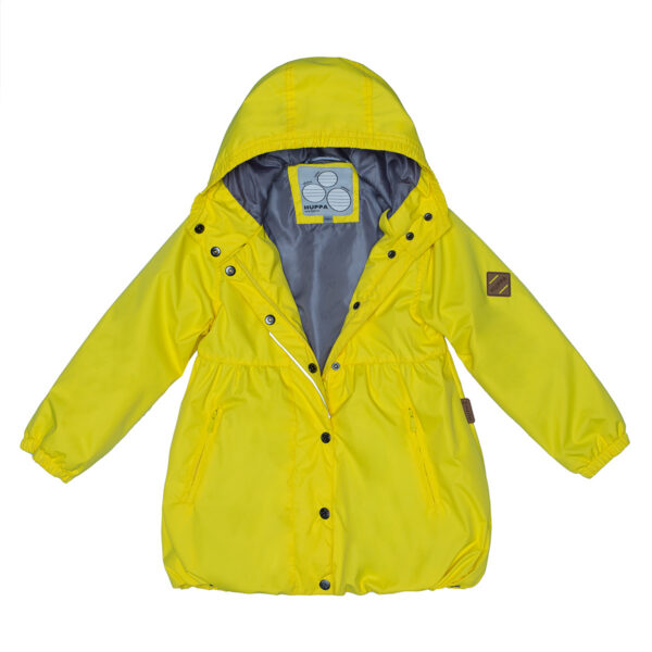 Children´s waterproof and windproof spring-autumn coat. Breathable outer fabric. The inside of the coat is made of soft lining fabric. Rubber band incorporated at the edge of the hood and at the ends of the sleeves. Zipper fastener. Front pockets with incorporated zippers. The coat has waterproof taped shoulder seams. Reflective details on the outer fabric.