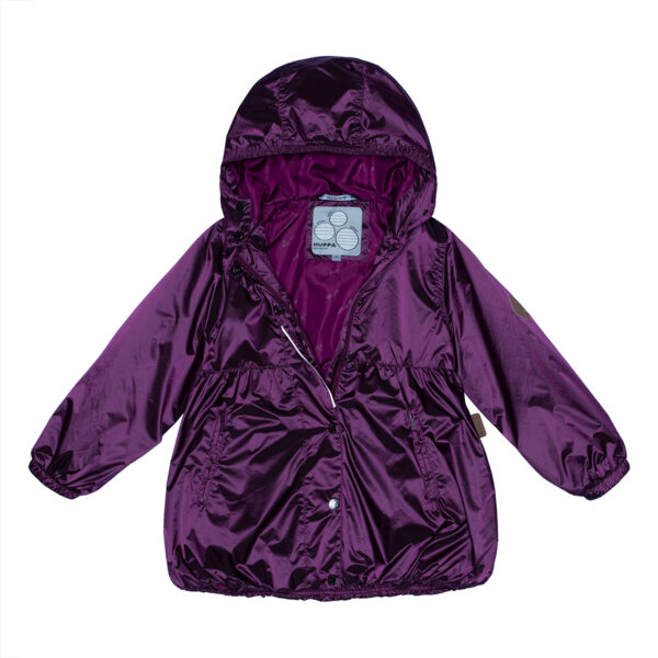 Children´s waterproof and windproof spring-autumn coat. Breathable outer fabric. The inside of the coat is made of soft lining fabric. Rubber band incorporated at the edge of the hood and at the ends of the sleeves. Zipper fastener. Front pockets with incorporated zippers. The coat has waterproof taped shoulder seams. Reflective details on the outer fabric.