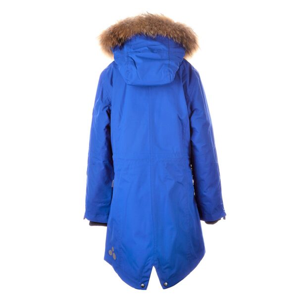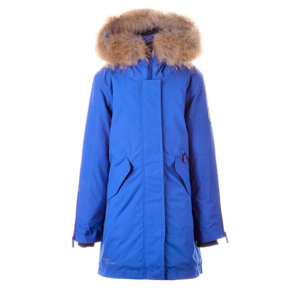 Women´s waterproof and windproof winter parka. Breathable fabric. Soft fabric on the inside. Faux sheepskin lining at the top of the back and inside the hood. Adjustable hood. Ribbed cuffs at sleeve ends. Two-way zipper covered with stud-press flap at front. Magnetic fastening on flap pockets. Drawstring tunnel with stoppers on waist. Waterproof taped seams. Removable natural fur trim on hood. Reflective elements on fabric.