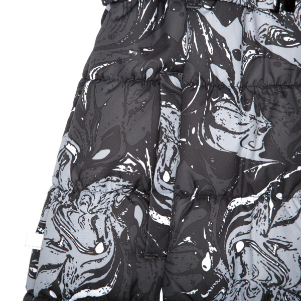 Children’s waterproof and windproof winter coat Breathable fabric Soft lining on the inside Removable snap-on hood Ribbed cuffs at sleeve ends Two-way zipper at front Faux fur trim on hood Reflective elements on fabric