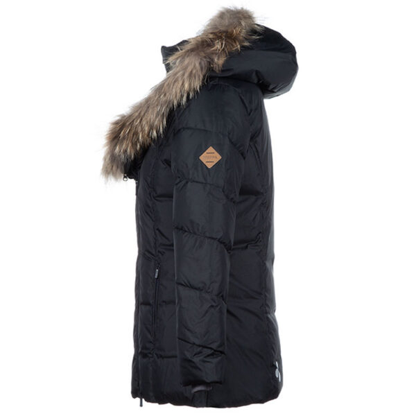 Children’s waterproof and windproof down coat. Breathable fabric. Soft lining on the inside. Down feathers and feathers for filling. Integrated zipper pockets at front. Reflective elements on fabric.