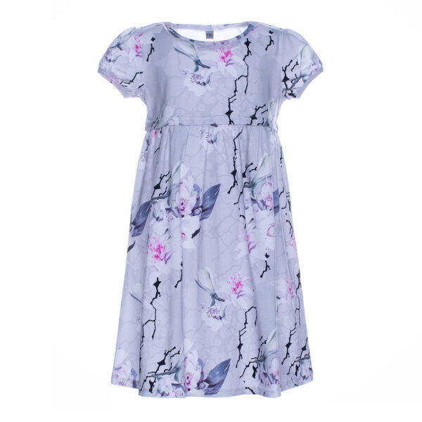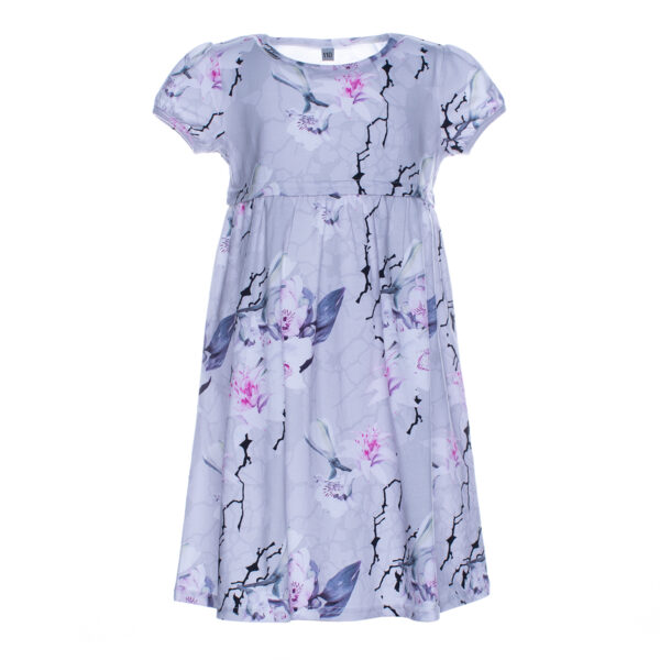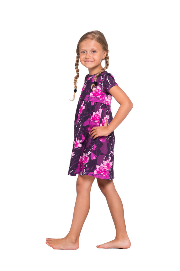 Girls´ dress with short sleeves. Material is 95% cotton, 5% elastane. Available in sizes 92-140.