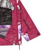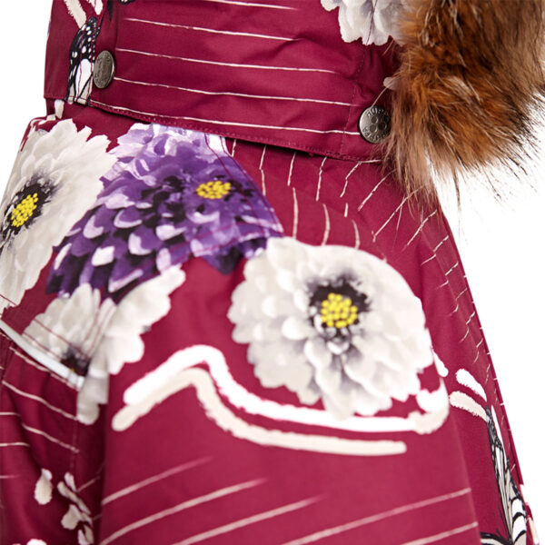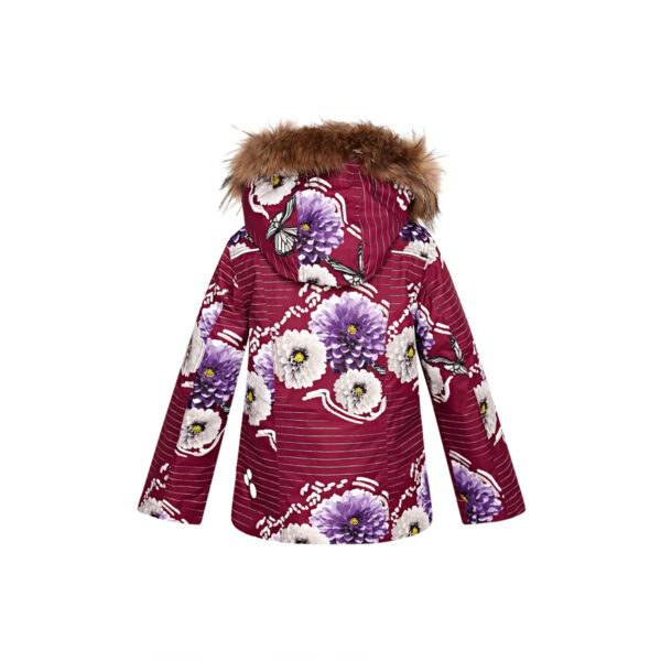 Girls´ winter jacket. The wind and water resistant outer fabric of the jacket has the best technical characteristics and the insulation is 200g. The ribbed inner cuffs in the jacket sleeves and the snow guard keep you warm and dry even when doing sports. The jacket is lined with heat-reflecting HUPPATEC fabric.