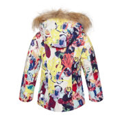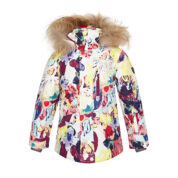 Girls´ winter jacket. The wind and water resistant outer fabric of the jacket has the best technical characteristics and the insulation is 200g. The ribbed inner cuffs in the jacket sleeves and the snow guard keep you warm and dry even when doing sports. The jacket is lined with heat-reflecting HUPPATEC fabric.