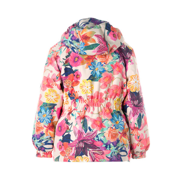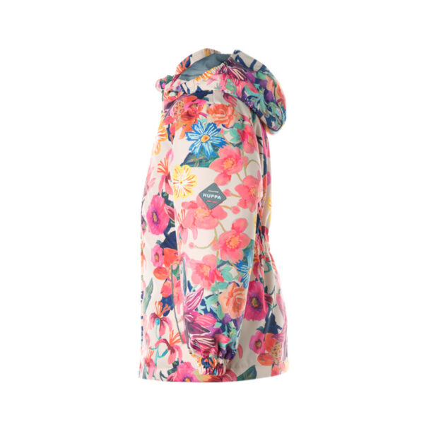 Children´s waterproof and windproof jacket. Breathable outer fabric. Rubber band incorporated in the sleeve ends, hood edge, and back waist. The removable hood attaches to the collar with press studs. Reflective details on the front and back.