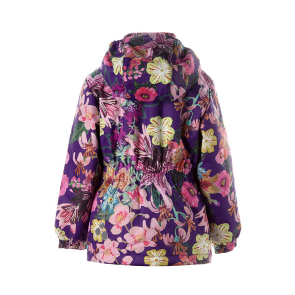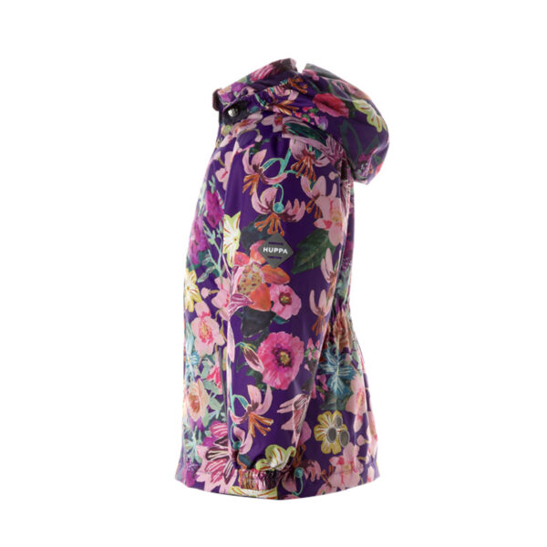 Children´s waterproof and windproof jacket. Breathable outer fabric. Rubber band incorporated in the sleeve ends, hood edge, and back waist. The removable hood attaches to the collar with press studs. Reflective details on the front and back.