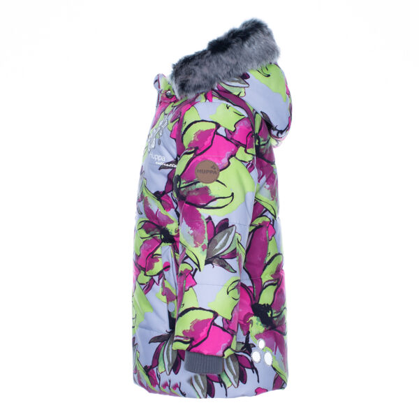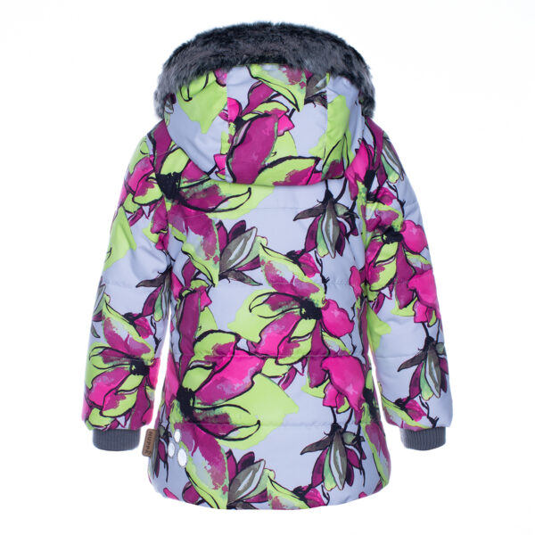 Väikeste tüdrukute 300g soojustusega jope on ideaalne kelgumäele ja lumememme tegemiseks! Jope vooder on pehme flanell ning pealiskangas on tuule- ja veekindel. Soonikust sisemised mansetid jope varrukates hoiavad lapse sooja ja kuivana ka aktiivses mänguhoos. Et laps oleks ka pimedal ajal nähtav, on jopele lisatud helkurdetailid ning rinnaesist kaunistab helkurmotiiv. Eemaldatav kapuuts on õues mängimiseks turvaline – see on kinnijäämise vältimiseks kinnitatud trukkidega ning selle karvane äär on samuti eemaldatav. Ruttu õue!