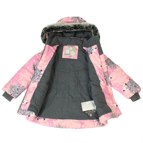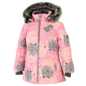 Little girls´ winter jacket with 300g insulation. The lining of the jacket is soft cotton flannel and the outer fabric is wind and water resistant. The inner ribbed cuffs on the sleeves of the jacket keep the child warm and dry. To ensure the child is visible even in the dark, the jacket has been equipped with reflective details and the front of the chest is decorated with a reflective detail. The removable hood is safe for playing outside – it is fastened with snaps to prevent getting caught, and its fur edge is also removable.