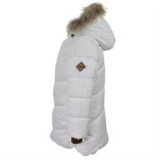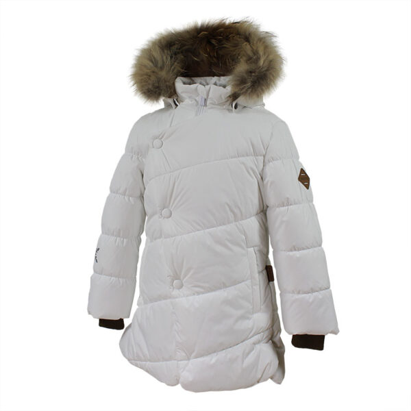 Children’s waterproof and windproof jacket. Breathable fabric. Soft mesh lining on the inside. Teddy Fur lining in hood. Removable snap-on hood. Ribbed cuffs at sleeve ends. Two-way zipper covered with diagonal stud-press flap at fron.t Jetted zipper pockets at front. Removable natural fur trim on hood. Reflective elements on fabric.