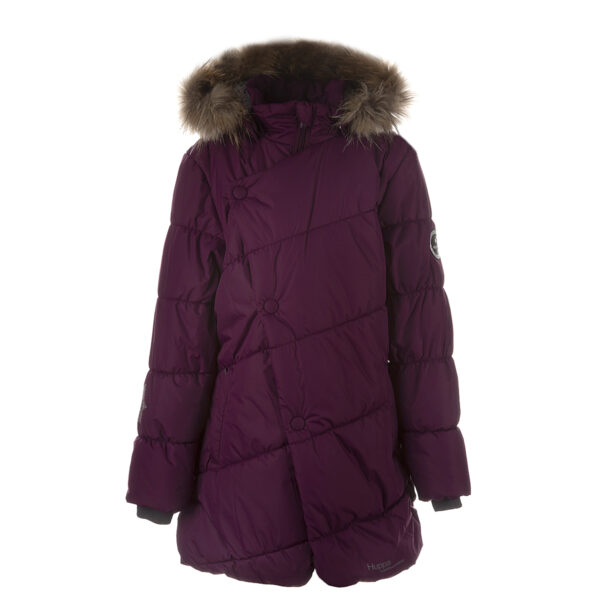 Children’s waterproof and windproof jacket. Breathable fabric. Soft mesh lining on the inside. Teddy Fur lining in hood. Removable snap-on hood. Ribbed cuffs at sleeve ends. Two-way zipper covered with diagonal stud-press flap at fron.t Jetted zipper pockets at front. Removable natural fur trim on hood. Reflective elements on fabric.