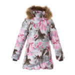Children’s waterproof and windproof jacket. Breathable fabric. Soft mesh lining on the inside. Teddy Fur lining in hood. Removable snap-on hood. Ribbed cuffs at sleeve ends. Two-way zipper covered with diagonal stud-press flap at fron.t Jetted zipper pockets at front. Removable natural fur trim on hood. Reflective elements on fabric.