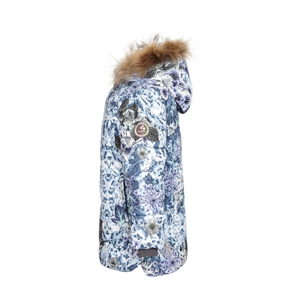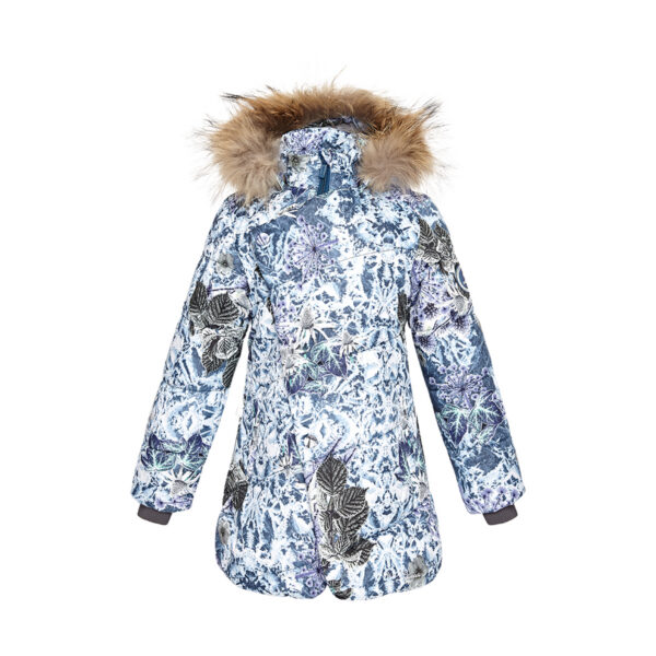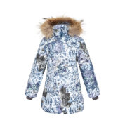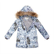 Children’s waterproof and windproof jacket. Breathable fabric. Soft mesh lining on the inside. Teddy Fur lining in hood. Removable snap-on hood. Ribbed cuffs at sleeve ends. Two-way zipper covered with diagonal stud-press flap at fron.t Jetted zipper pockets at front. Removable natural fur trim on hood. Reflective elements on fabric.