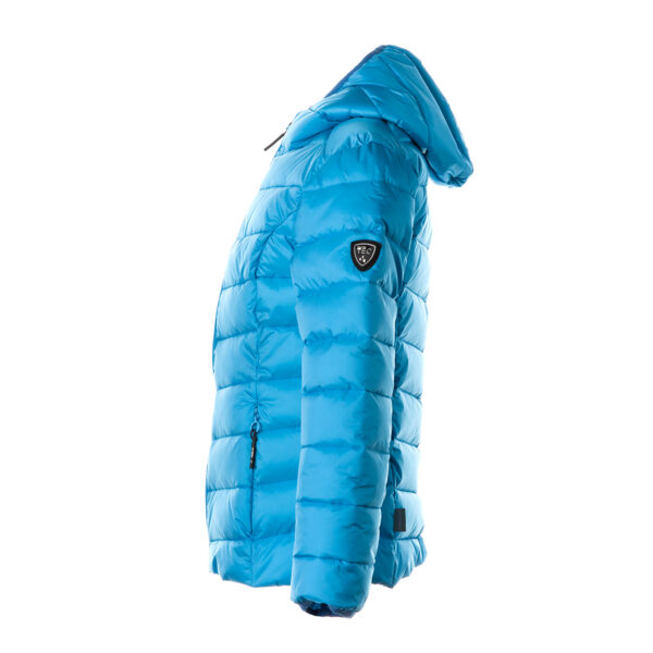Children’s quilted jacket. Windproof slightly glossy top fabric. The jacket is filled with innovative recycled material imitating the properties of feather fill. The material is warm, dries quickly and does not clump after washing. A great alternative to natural feather fill.