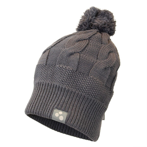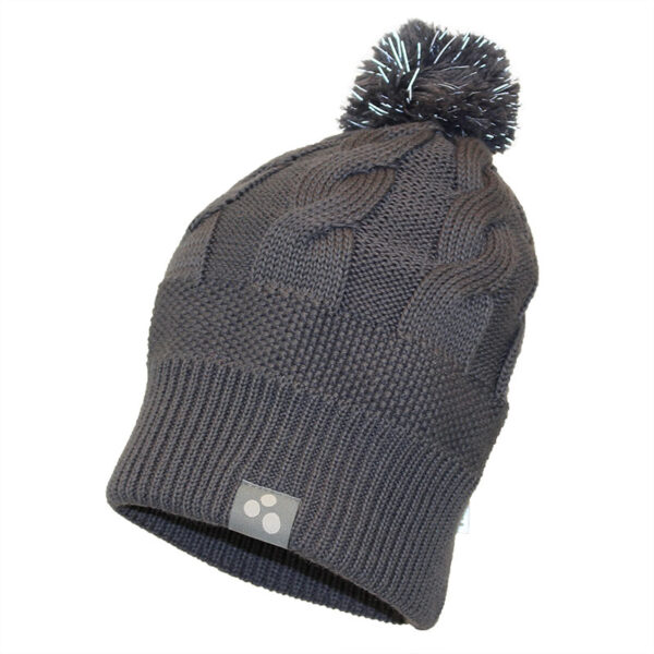 Tassel hat for girls. The hat is knitted from 50% merino wool, 50% acrylic. The nice ribbed hem protects the ears from the cold wind. The hat´s tassel contains reflective thread.