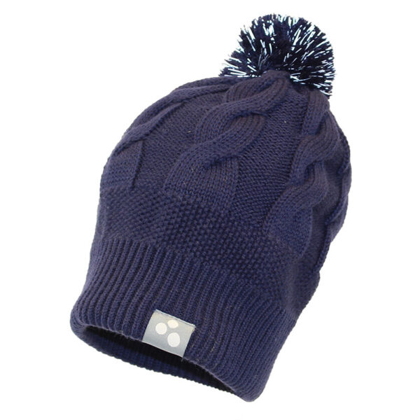 Tassel hat for girls. The hat is knitted from 50% merino wool, 50% acrylic. The nice ribbed hem protects the ears from the cold wind. The hat´s tassel contains reflective thread.