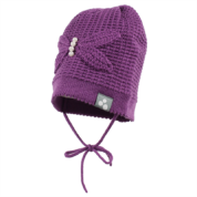 Winter hat for little girls. The lining of the hat is made of cotton jersey and the top is made of 50% merino wool, 50% acrylic yarn. Decorated with pearls.