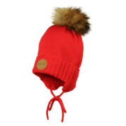 The girls´ knitted hat is extra warm and cozy. The hat is decorated with a furry tassel and has a soft fleece lining.