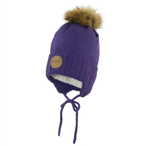 The girls´ knitted hat is extra warm and cozy. The hat is decorated with a furry tassel and has a soft fleece lining.