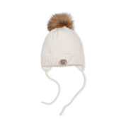The girls´ knitted hat is extra warm and cozy. The hat is decorated with a furry tassel and has a soft fleece lining.