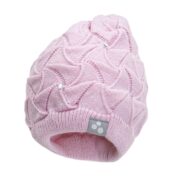 A knitted winter hat for girls. The hat is double-knitted from acrylic yarn. All girls´ favorite shiny stones are added for decoration. The double rib at the bottom protects the ears from the cold wind.