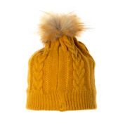 Children´s hat with fleece lining, knitted from soft yarn. Faux fur pompom. Reflective Huppa logo on the hat.