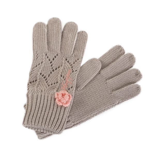 Girls´ knitted spring-autumn gloves. Gloves are knitted from soft 100% acrylic yarn. They are decorated with a nice Huppa embroidery and a flower. For more comfortable wearing, the wrist of the gloves is knitted in a ribbed pattern so that the gloves stay on the hand better.