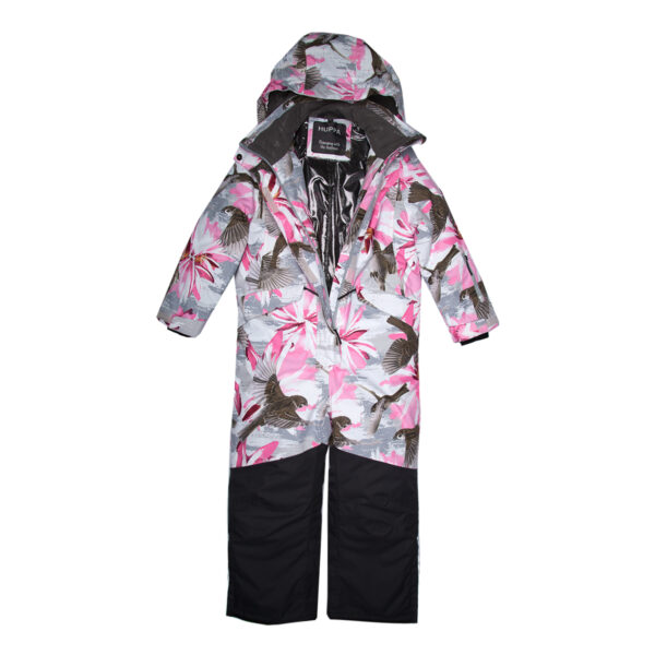 Children´s overalls for winter with a heat-reflecting HuppaTec lining and 200 g of insulation. The overalls have a breathable and waterproof outer fabric that is ideal for our climate. Taped seat seams, crotch seams and side seams. The overalls have reinforced Cordura fabric at the bottom of the legs, a removable hood, a zippered inner pocket and outer pockets for storing everything you need. The reflective details added to the overalls ensure visibility in the dark.