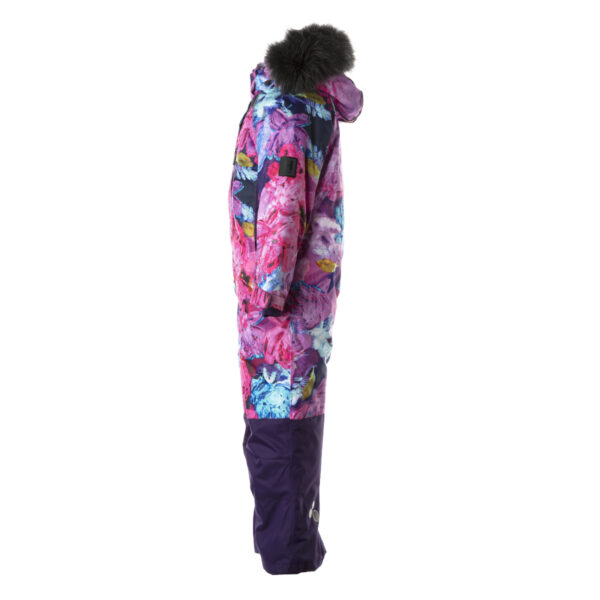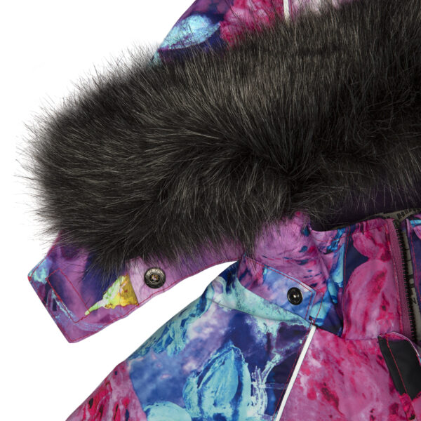 Children’s waterproof and windproof overall. Breathable fabric. Soft lining fabric on the inside. Removable snap-on hood Integrated adjustable elastic band around the hood and on the back. Ribbed cuffs at sleeve ends. Adjustable sleeve ends. Lapped zipper at front. Integrated zipper pockets at front. Buttonhole-adjustable waist. Snow gaiters at leg ends. Drawstring tunnel with stoppers at leg ends. Waterproof taped seams. Removable faux fur trim on hood. Reflective elements on fabric.