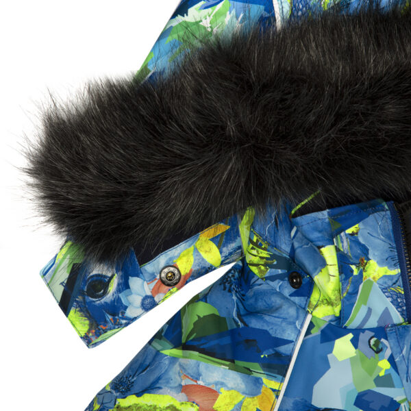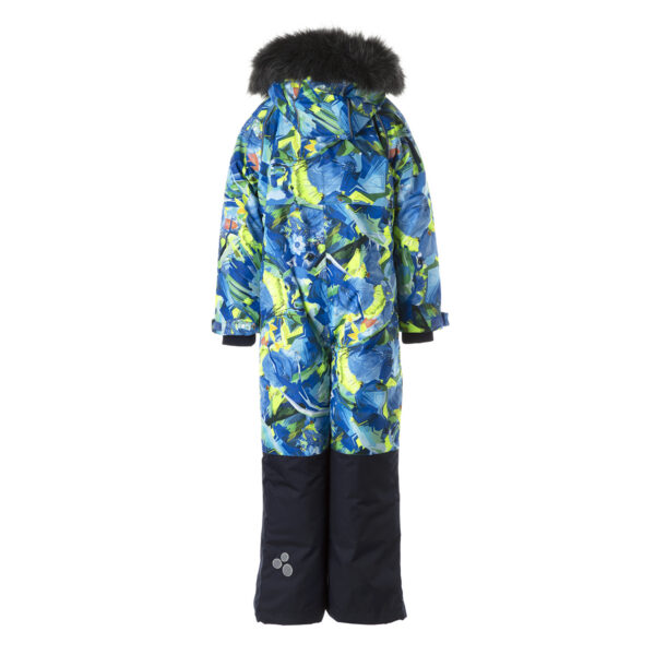 Children’s waterproof and windproof overall. Breathable fabric. Soft lining fabric on the inside. Removable snap-on hood Integrated adjustable elastic band around the hood and on the back. Ribbed cuffs at sleeve ends. Adjustable sleeve ends. Lapped zipper at front. Integrated zipper pockets at front. Buttonhole-adjustable waist. Snow gaiters at leg ends. Drawstring tunnel with stoppers at leg ends. Waterproof taped seams. Removable faux fur trim on hood. Reflective elements on fabric.