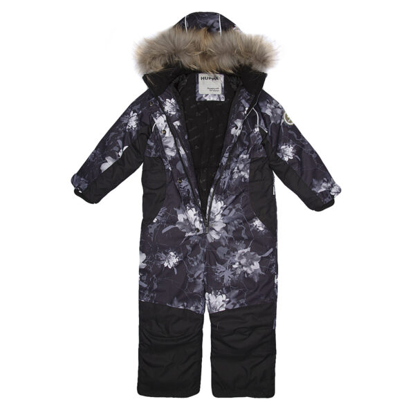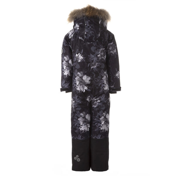 Children’s waterproof and windproof overall. Breathable fabric. Soft lining fabric on the inside. Removable snap-on hood. Integrated adjustable elastic band around the hood and on the back. Ribbed cuffs at sleeve ends. Adjustable sleeve ends. Lapped zipper at front. Integrated zipper pockets at front. Buttonhole-adjustable waist. Waterproof taped seams. Reflective elements on fabric.