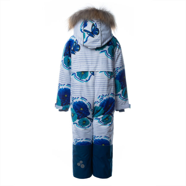 Children’s waterproof and windproof overall. Breathable fabric. Soft lining fabric on the inside. Removable snap-on hood. Integrated adjustable elastic band around the hood and on the back. Ribbed cuffs at sleeve ends. Adjustable sleeve ends. Lapped zipper at front. Integrated zipper pockets at front. Buttonhole-adjustable waist. Waterproof taped seams. Reflective elements on fabric.