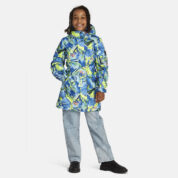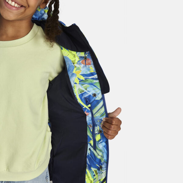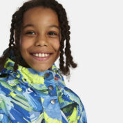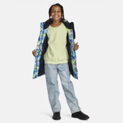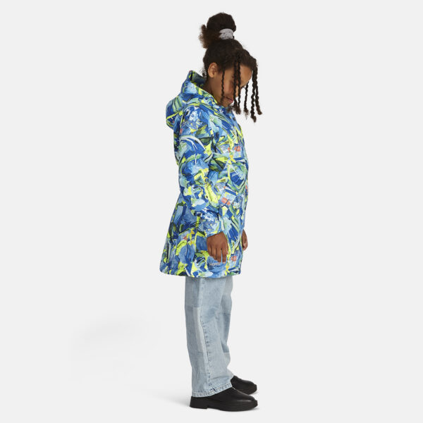 Children’s waterproof and windproof between-seasons parka Breathable fabric Adjustable hood and sleeve ends Drawstring tunnel with stoppers on waist Waterproof taped seams Reflective elements on fabric