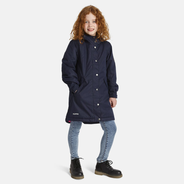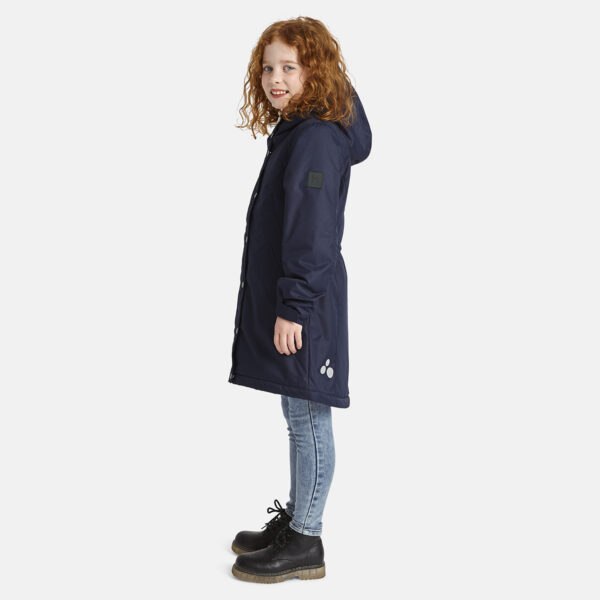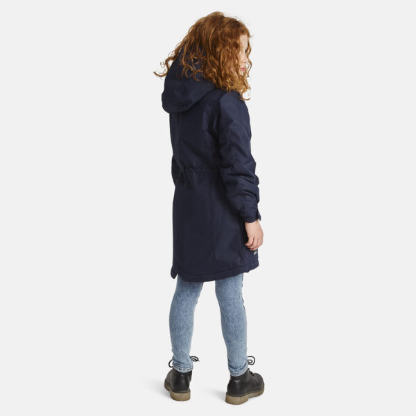 Children’s waterproof and windproof between-seasons parka. Breathable fabric. Adjustable hood and sleeve ends. Drawstring tunnel with stoppers on waist. Waterproof taped seams. Reflective elements on fabric.