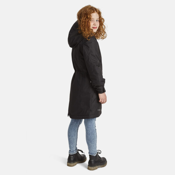 Children’s waterproof and windproof between-seasons parka. Breathable fabric. Adjustable hood and sleeve ends. Drawstring tunnel with stoppers on waist. Waterproof taped seams. Reflective elements on fabric.
