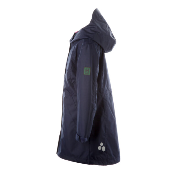 Insulated (40 g) water- and windproof parka for girls, suitable for spring and autumn. The top layer of the parka is made of a breathable material. It has an adjustable hood and sleeve ends, as well as an adjustable waist with stoppers. It has waterproof, taped seams and is decorated with reflective details.