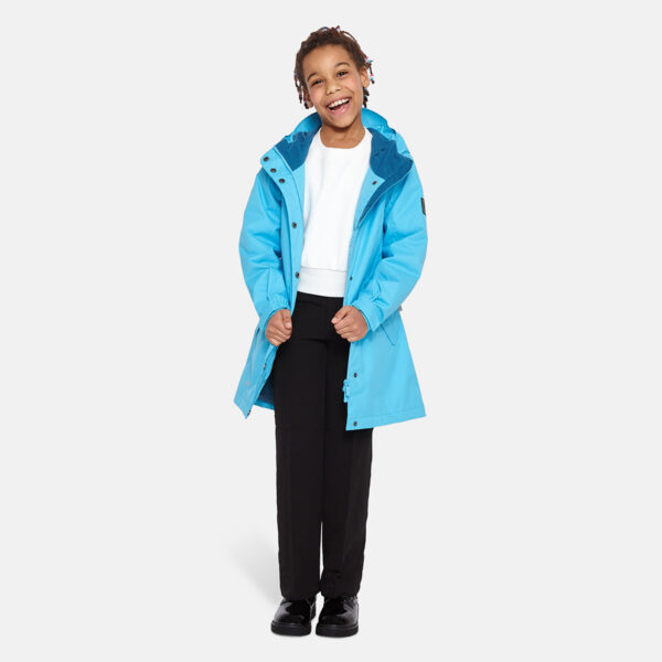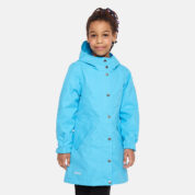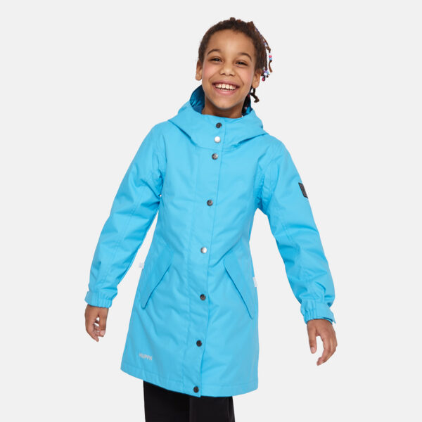 Insulated (40 g) water- and windproof parka for girls, suitable for spring and autumn. The top layer of the parka is made of a breathable material. It has an adjustable hood and sleeve ends, as well as an adjustable waist with stoppers. It has waterproof, taped seams and is decorated with reflective details.