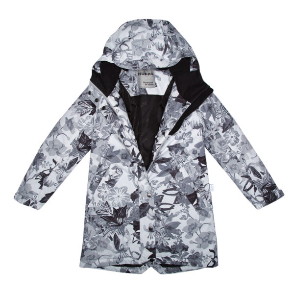 Insulated (40 g) water- and windproof parka for girls, suitable for spring and autumn. The top layer of the parka is made of a breathable material. It has an adjustable hood and sleeve ends, as well as an adjustable waist with stoppers. It has waterproof, taped seams and is decorated with reflective details.