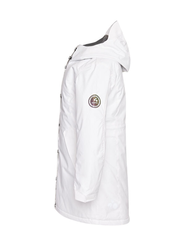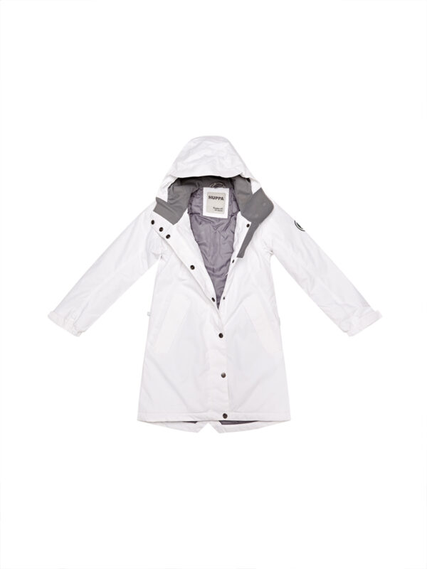 Children´s waterproof and windproof semi-season parka. Breathable outer fabric. The inside of the parka is made of soft lining fabric. Rubber band incorporated at the edge of the hood. Adjustable sleeve ends. Rubber band tunnel with stoppers on the waistline. The parka has a waterproof taped armhole and neck, hood, and shoulder seams. Reflective details on the outer fabric.