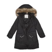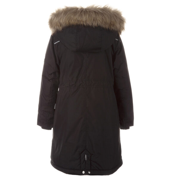 Bērnu ūdens un vēja necaurlaidīga ziemas jaka Gaisu caurlaidīgs virsējais audums Mīksta jakas odere Noņemamā kapuce pie apkakles piestiprināma ar velkro aizdari Rievotas piedurknes Jostas daļā aizdare ar stoperi Ūdens necaurlaidīgi līmēti izšuvumi Kapucei mākslīgās kažokādas mala Auduma virspusē atstarojošas detaļas