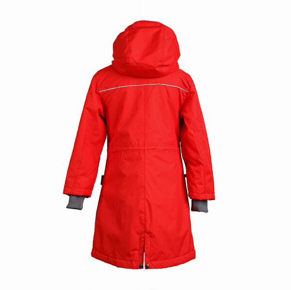 Girls´ spring-autumn parka with 40g insulation. For more comfortable wearing, the jacket has a removable hood with snaps, waterproof taped shoulder seams, and ribbed sleeve cuffs. The parka has an elastic waistband. The front is decorated with various pockets where the young girl can store gloves or other necessary items.