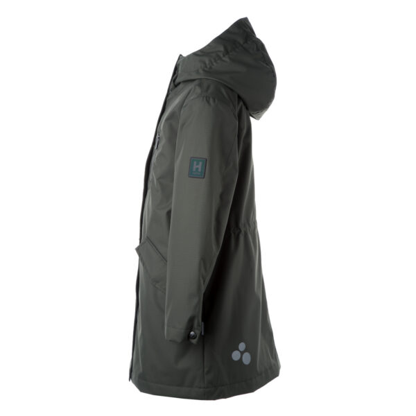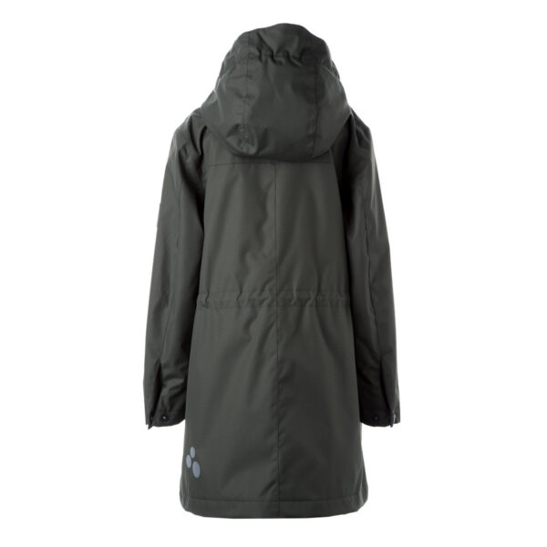 Insulated (40 g) water- and windproof parka for girls, suitable for spring and autumn. The top layer of the parka is made of a breathable material. The parka has adjustable sleeve ends and an adjustable waist with stoppers. It has waterproof, taped seams and is decorated with reflective details.