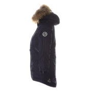 Children’s waterproof and windproof winter parka. Breathable fabric. Soft fabric on the inside. Faux sheepskin lining at the top of the back and inside the hood. Adjustable hood. Ribbed cuffs at sleeve ends. Two-way zipper covered with stud-press flap at front. Magnetic fastening on flap pockets. Drawstring tunnel with stoppers on waist. Waterproof taped seams. Removable natural fur trim on hood. Reflective elements on fabric.
