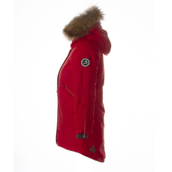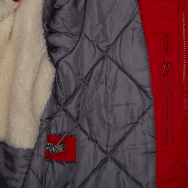 Children’s waterproof and windproof winter parka. Breathable fabric. Soft fabric on the inside. Faux sheepskin lining at the top of the back and inside the hood. Adjustable hood. Ribbed cuffs at sleeve ends. Two-way zipper covered with stud-press flap at front. Magnetic fastening on flap pockets. Drawstring tunnel with stoppers on waist for adjusting the waist from the inside. Waterproof taped seams. Removable natural fur trim on hood. Reflective elements on fabric.