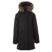 Children’s waterproof and windproof winter parka. Breathable fabric. Soft fabric on the inside. Faux sheepskin lining at the top of the back and inside the hood. Adjustable hood. Ribbed cuffs at sleeve ends. Two-way zipper covered with stud-press flap at front. Magnetic fastening on flap pockets. Drawstring tunnel with stoppers on waist. Waterproof taped seams. Removable faux fur trim on hood. Reflective elements on fabric.