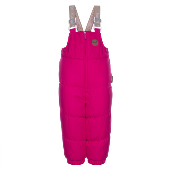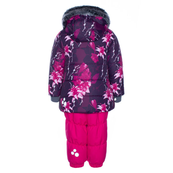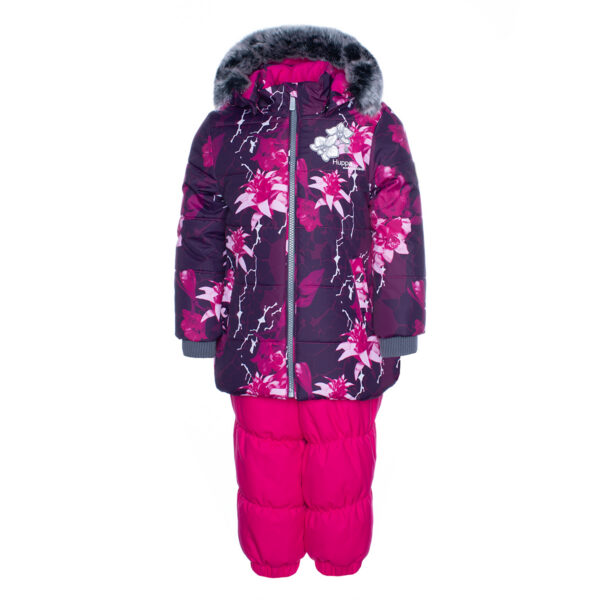 Girls´ winter set. The jacket has 300g insulation, the pants have 160g insulation. The outer fabric of the set is wind and water resistant. Taped seams, an internal snow guard in the pants and adjustable drawstrings keep the child warm and dry. The set has reflective details. The removable hood is attached to the collar with buttons and the furry edge is also removable.