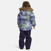 Children’s jacket and pants set. Waterproof and windproof, breathable top fabric. Soft mesh lining on the inside of the jacket and pants. Integrated elastic band at sleeve ends and on the waist. Removable snap-on hood Faux fur trim on hood. The bib pants have elastic adjustable braces. Integrated elastic band on waist. Drawstring tunnel with stoppers at leg ends. Waterproof taped seams. The pants have no inner leg seam. Reflective elements on both jacket and pants.