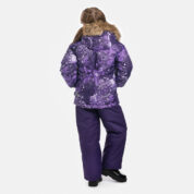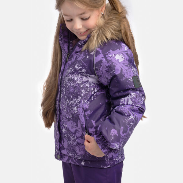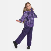 Bērnu jakas un bikšu komplekts. Ūdens un vēja necaurlaidīgs, gaisu caurlaidīgs virsējais audums. Jakas un bikšu odere no mīksta auduma. Piedurknēs iestrādāta gumijas apdare. Noņemamā kapuce pie apkakles piestiprināma ar velkro aizdari. Kapucei noņemama mākslīgās kažokādas mala. Biksēm ir augstā vidukļa daļa un regulējamas, elastīgas lences. Vidukļa daļā un starās iestrādāta gumijas apdare. Ūdens necaurlaidīgi līmēti izšuvumi. Biksēm komplektā elastīgas pazoles. Kā jakai, tā arī biksēm ir atstarojošas detaļas.