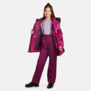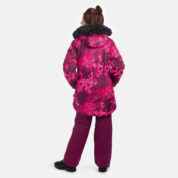 Children’s jacket and pants set. Waterproof and windproof, breathable top fabric. Soft mesh lining on the inside of the jacket and pants. Integrated elastic band at sleeve ends and on the waist. Removable snap-on hood. Removable faux fur trim on hood. The bib pants have elastic adjustable braces. Integrated elastic band on waist. Snow gaiters at leg ends. Drawstring tunnel with stoppers at leg ends. Waterproof taped seams. The pants have no inner leg seam. Reflective elements on both jacket and pants.